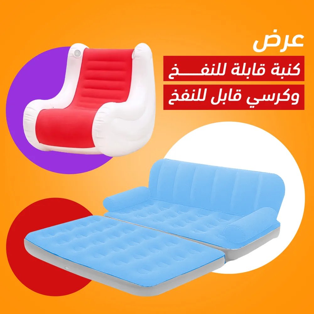 • متعددة الاستخدامات: يمكن استخدام الكنبة القابلة للنفخ في العديد من الأماكن والمناسبات المختلفة. يمكنك استخدامها في غرفة المعيشة لتوفير مقعد إضافي للضيوف، أو في الحديقة للاسترخاء في الهواء الطلق، أو حتى في رحلات التخييم والنزهات.